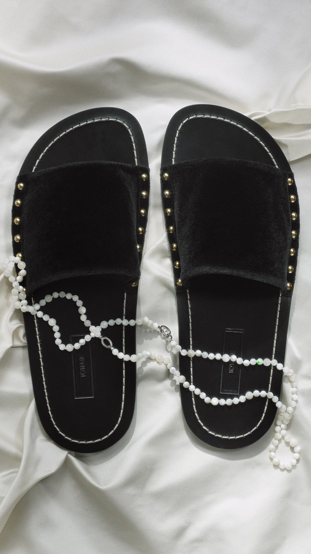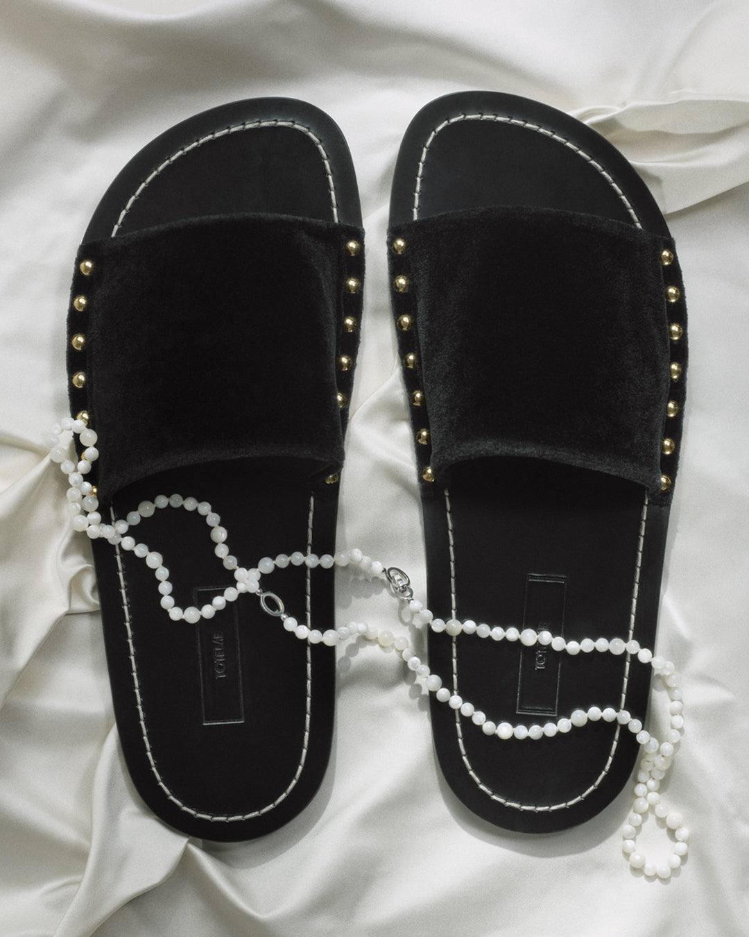 Studded velvet slides