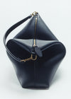 A soft geometric silhouette with refined proportions and a gentle dip through the center.