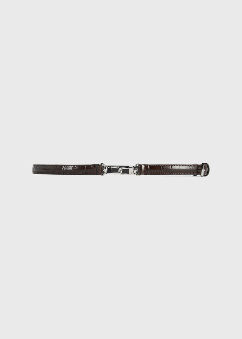 Slim croco-embossed belt chocolate