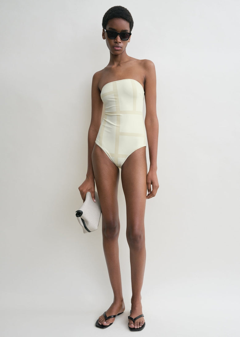 TOTEME's swimwear edit ranges from women's swimsuits, bikini tops and bottoms to cover-ups, beach towels and accessories.