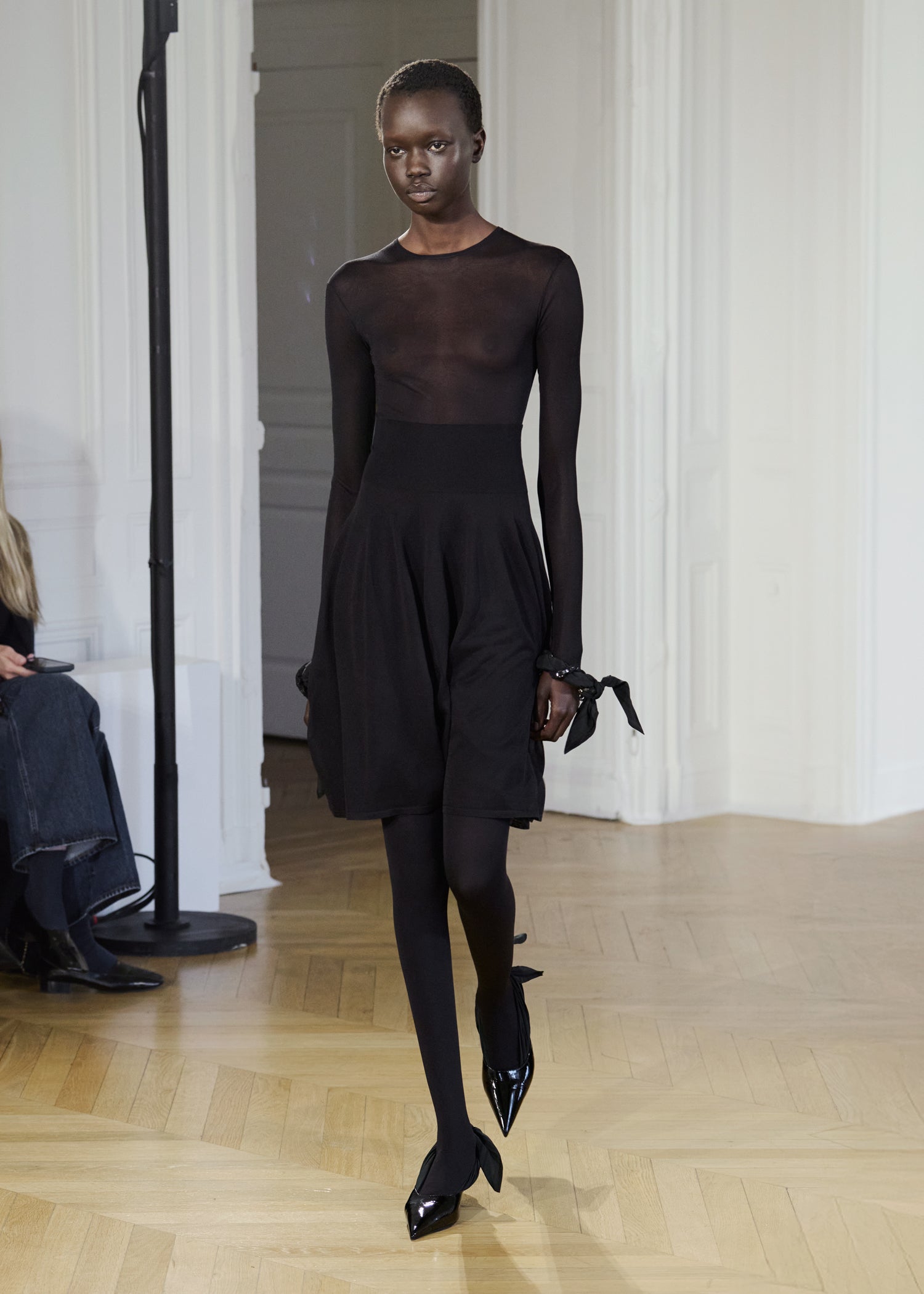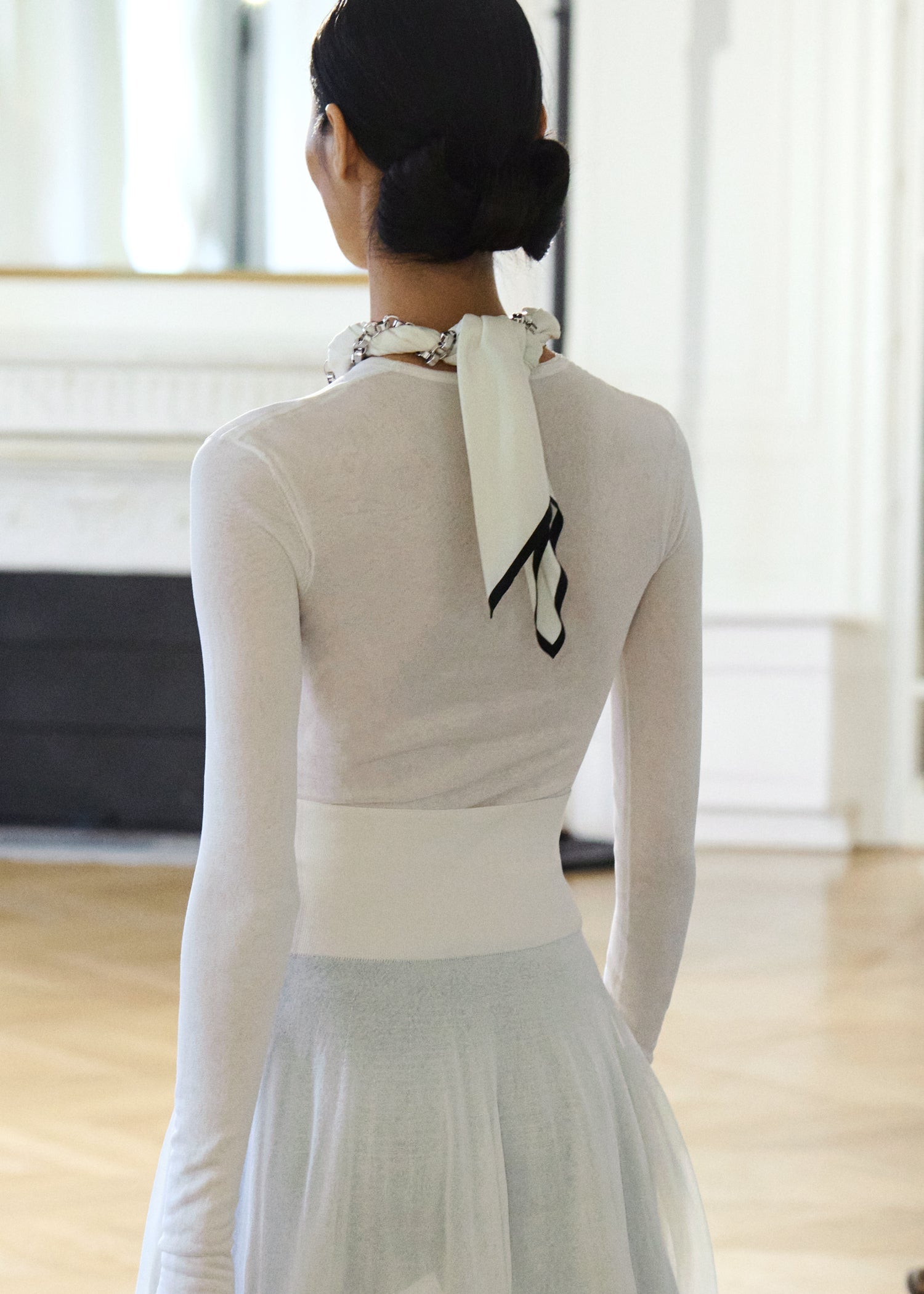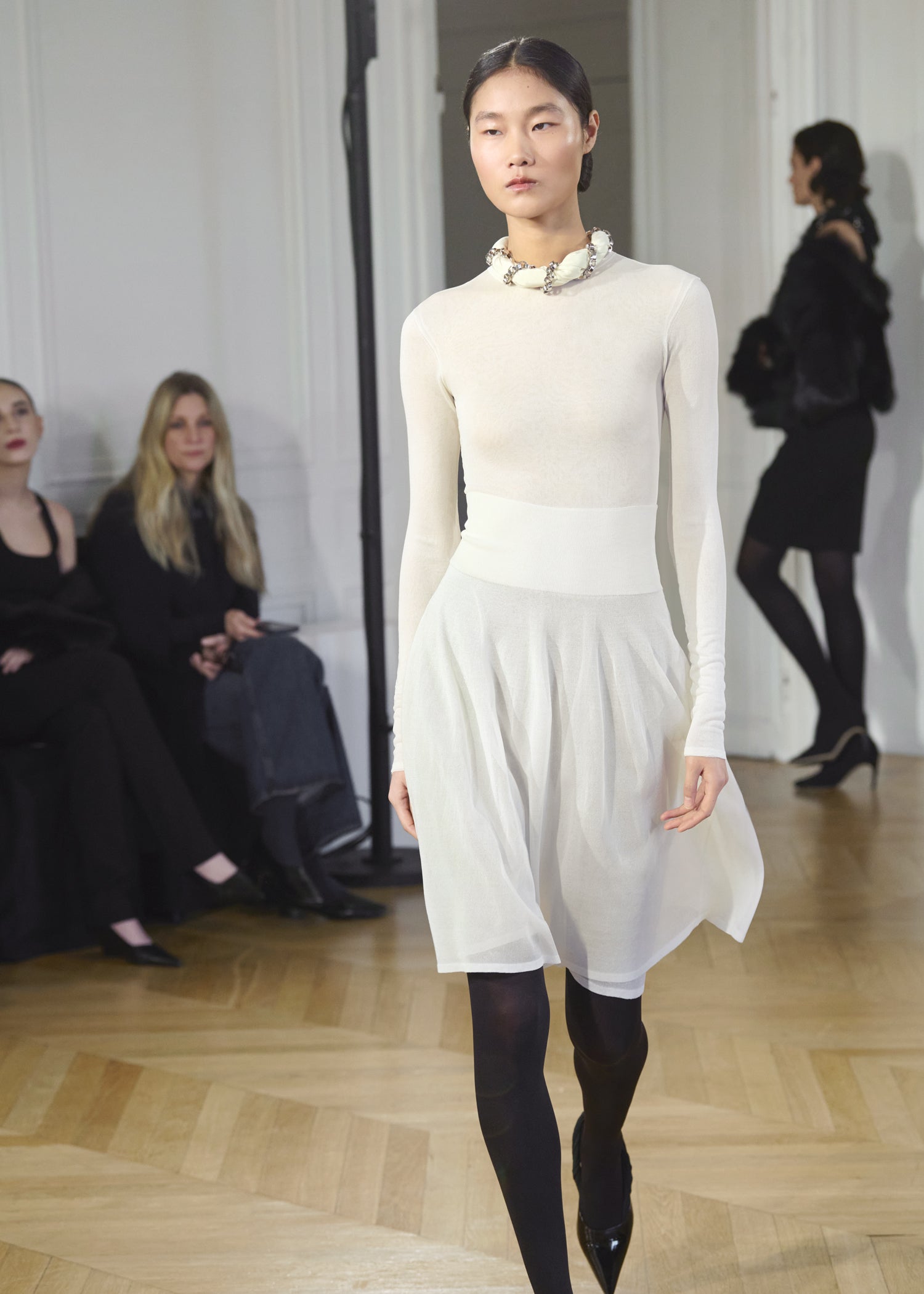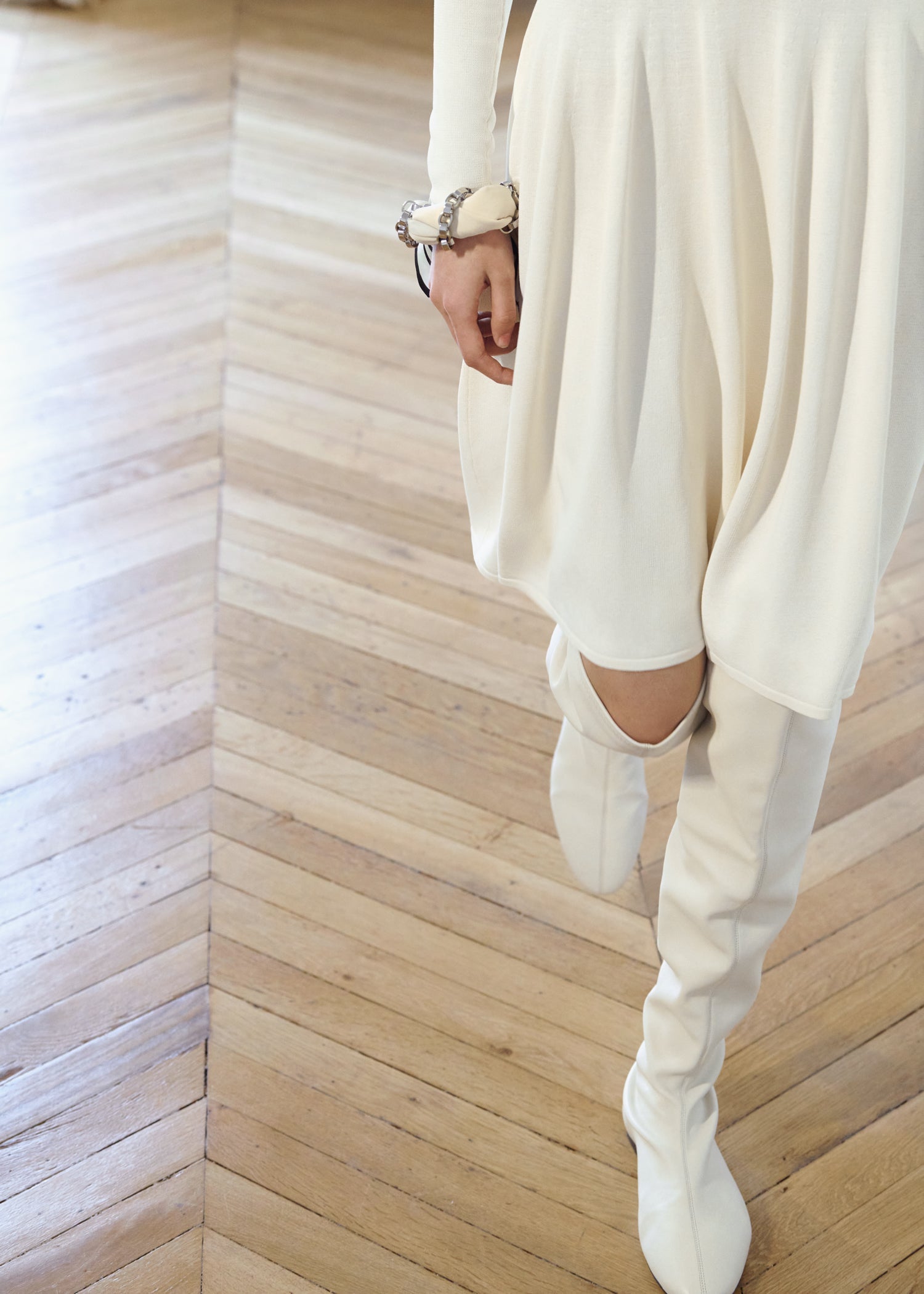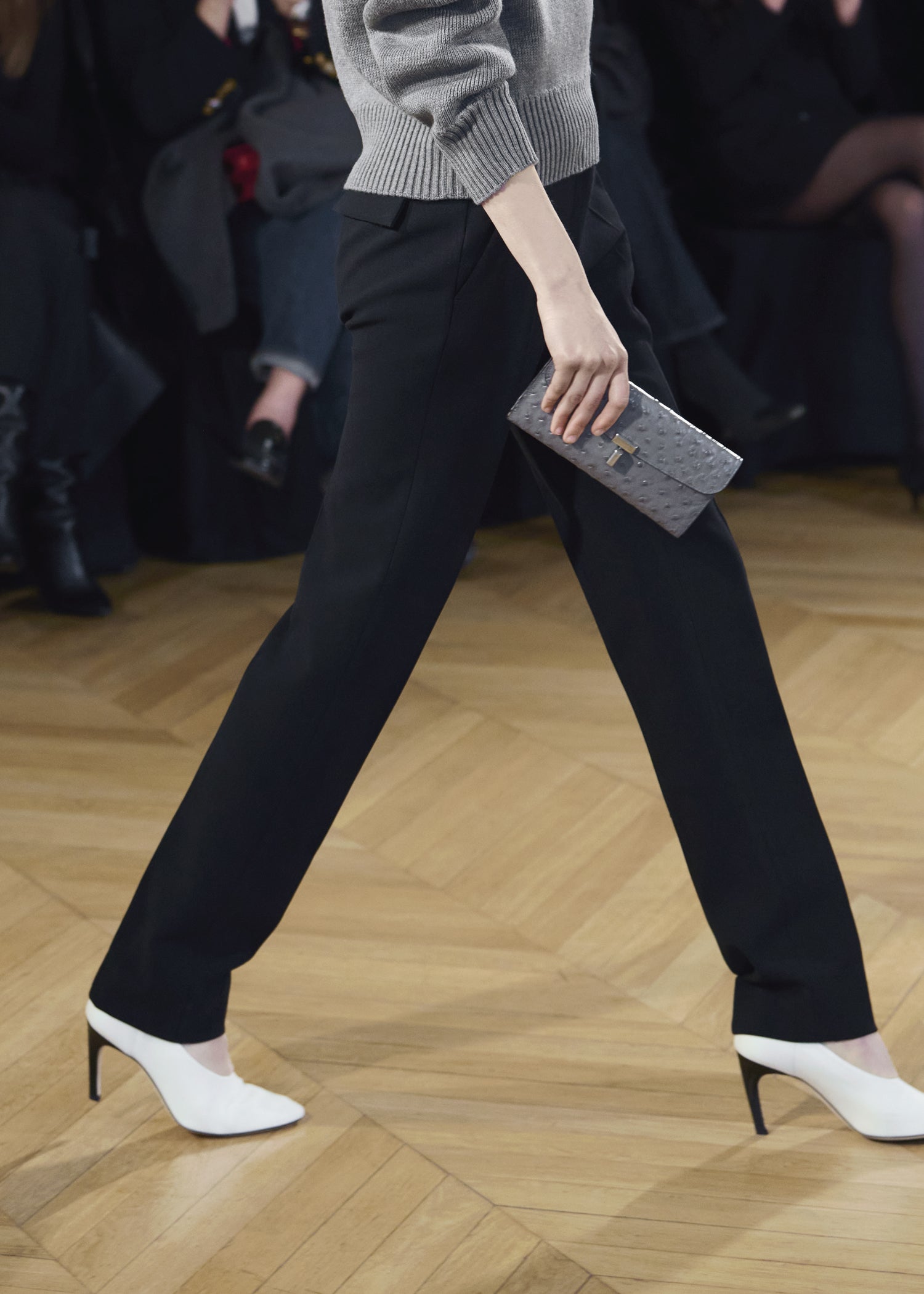 Expressive in its Swedish-inflected sophistication, the Fall Winter 26 runway collection is an exercise in feminine verve. Athletic, wardrobe-building pieces are lent renewed stridency with the kick of a sculptural silhouette. Seemingly minimalist fabrics in shades of noir, with a pop of cherry red, are endowed with unexpected drama, including buttery leather lined with cashmere. Pierced-toe leather pumps lend edge and bags skew city-slick, with the biker-coded Mercer tote joining the lineup alongside the T-lock slung crossbody on ornamental chains. True to TOTEME, each look is an invitation to personality, serving a woman of substance.