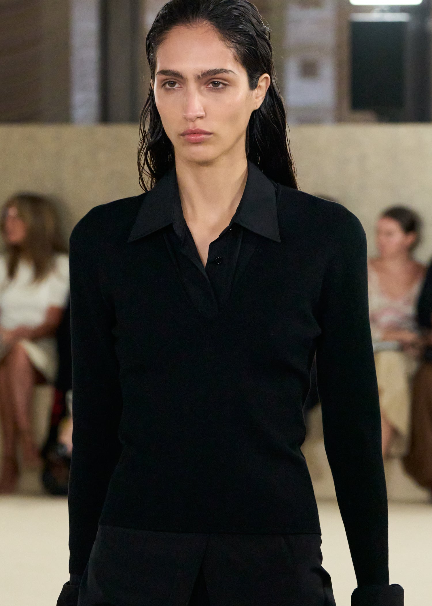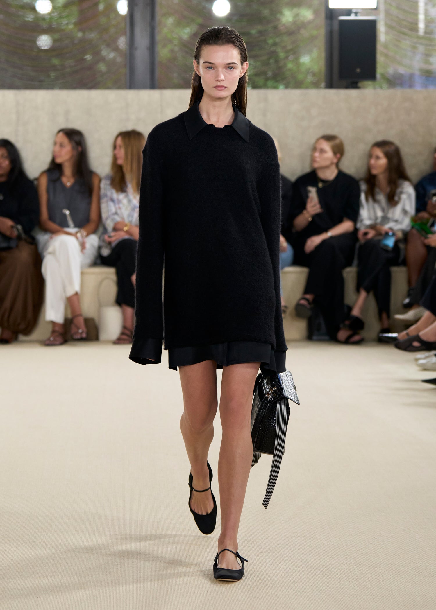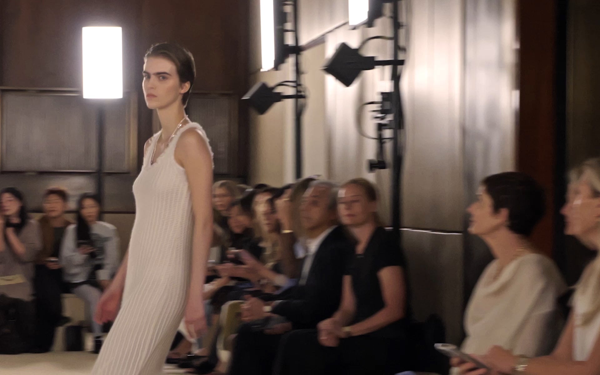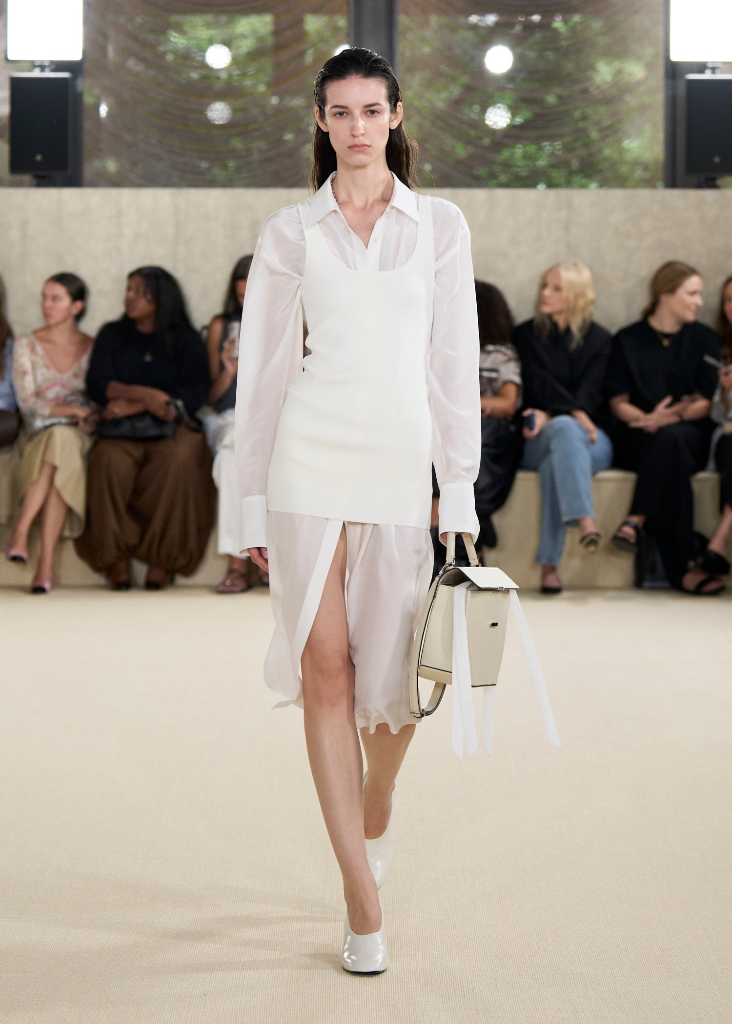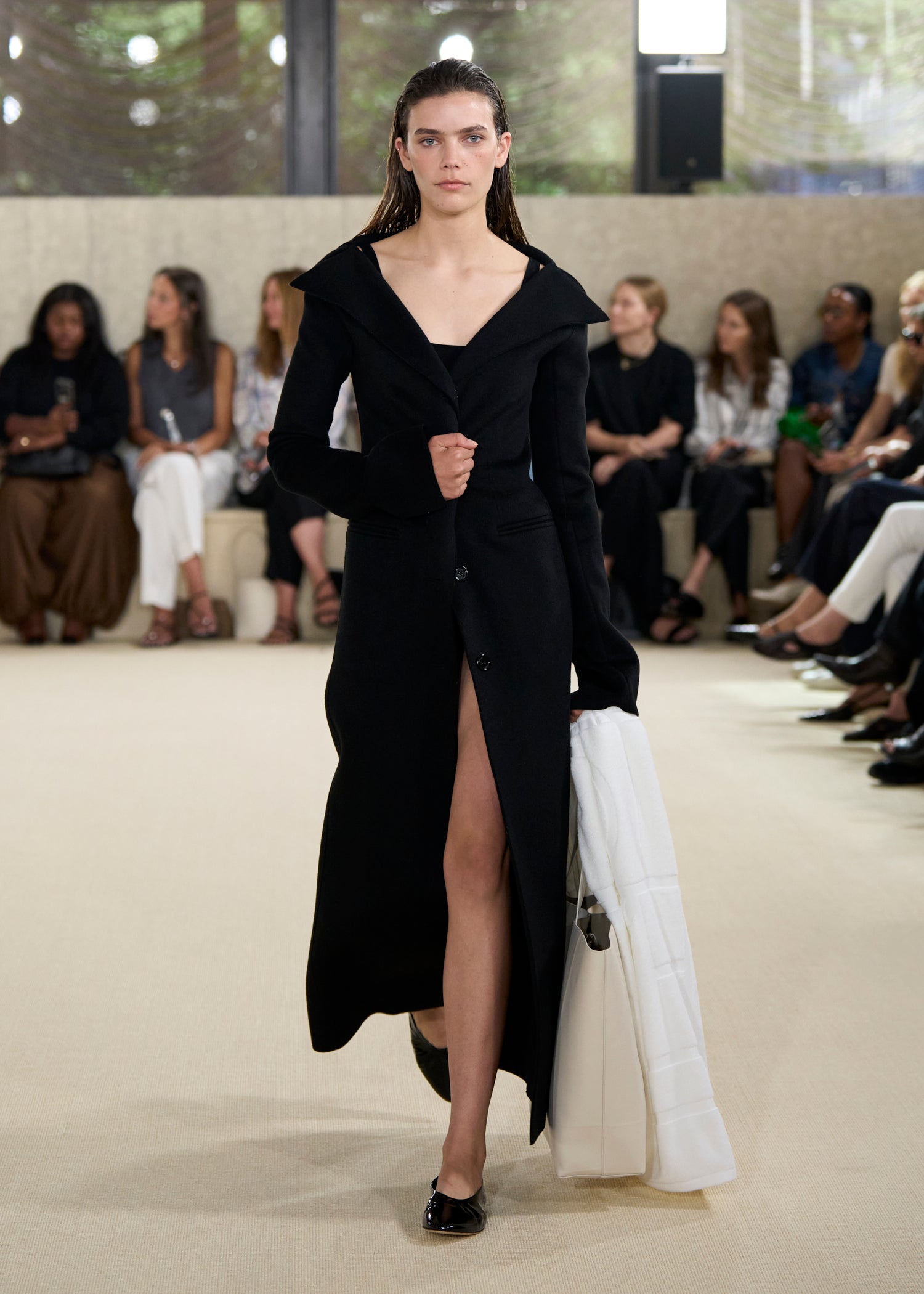 The Spring Summer 26 runway collection distills undone beauty. TOTEME icons like the tank, trench coat and pajama are deconstructed with easy-going precision, unravelling finishes, and a liberating mix of time-softened textures.