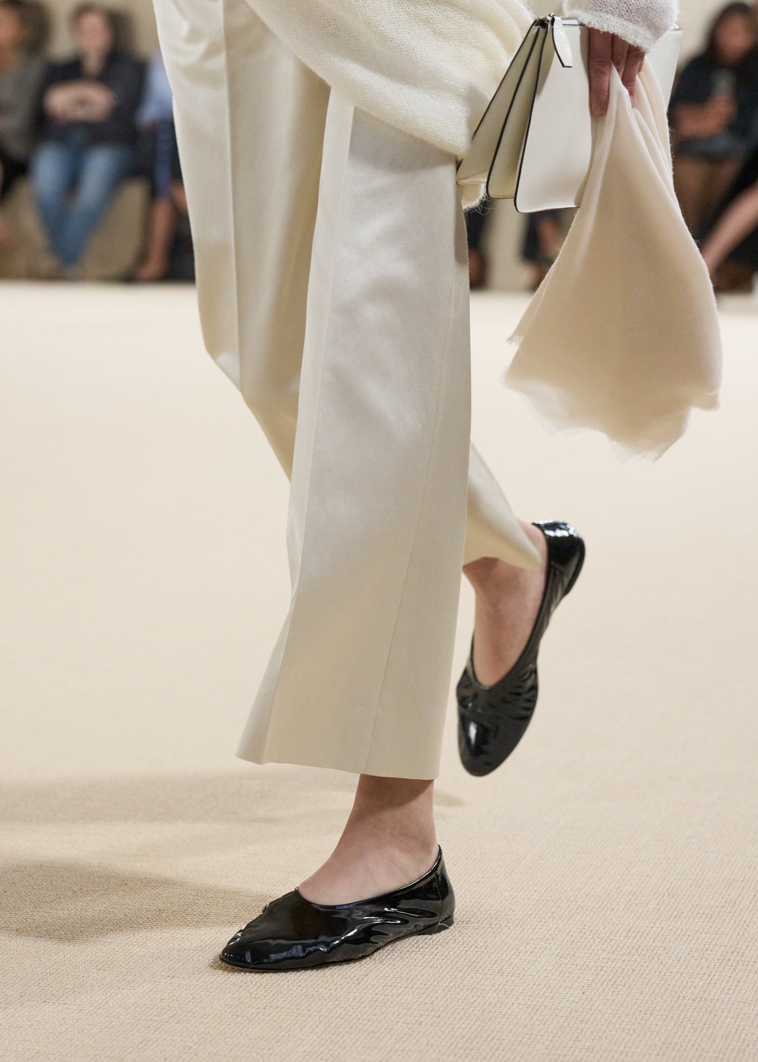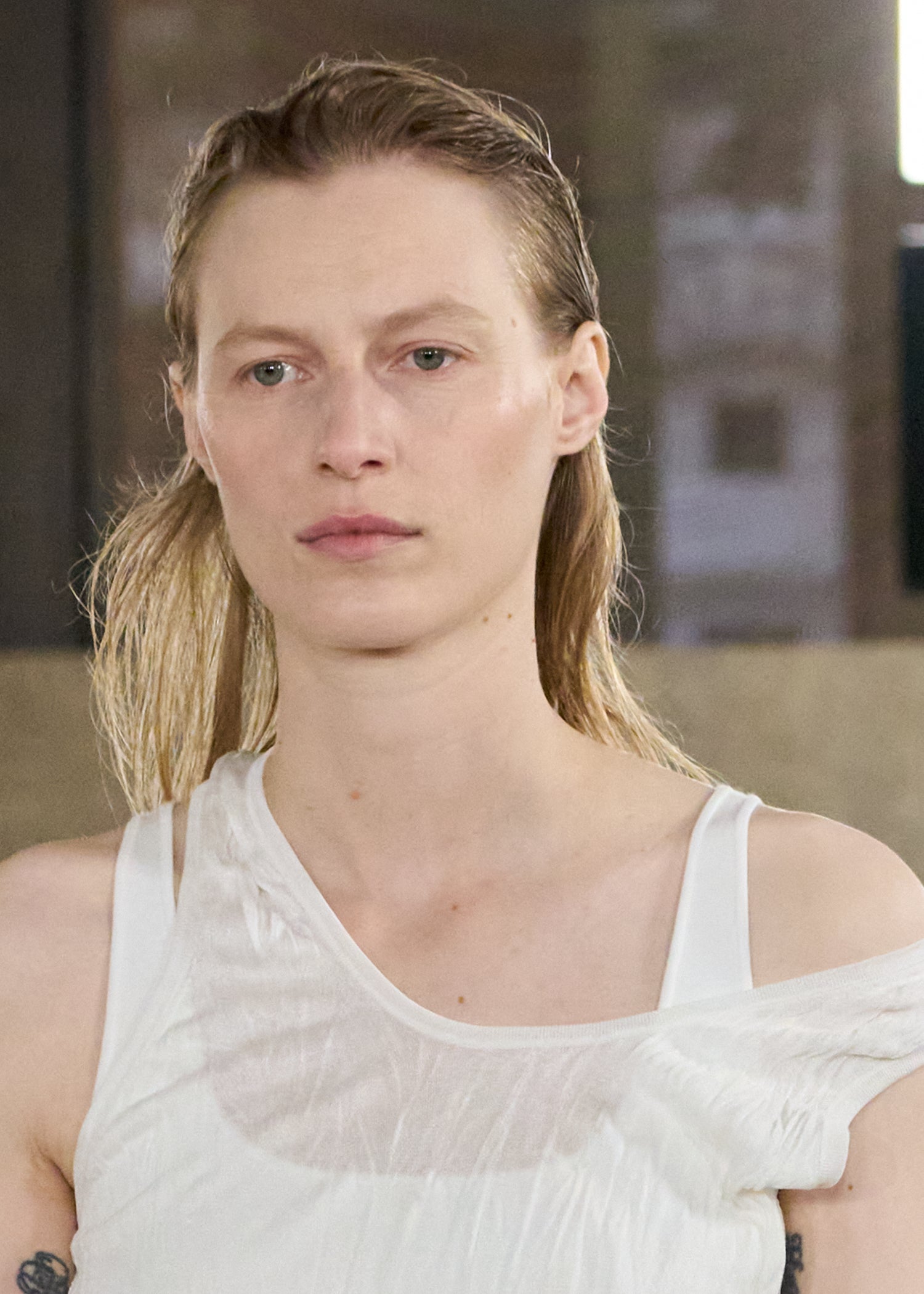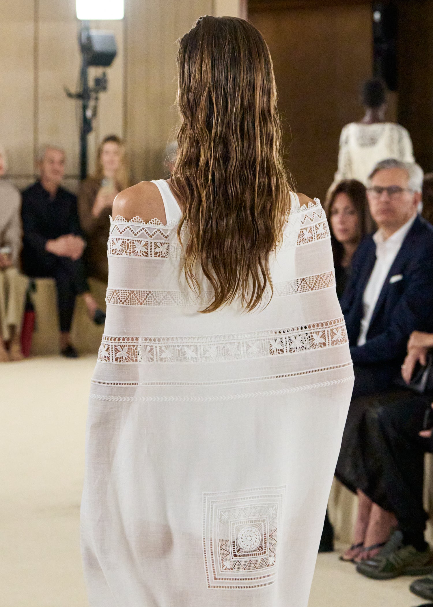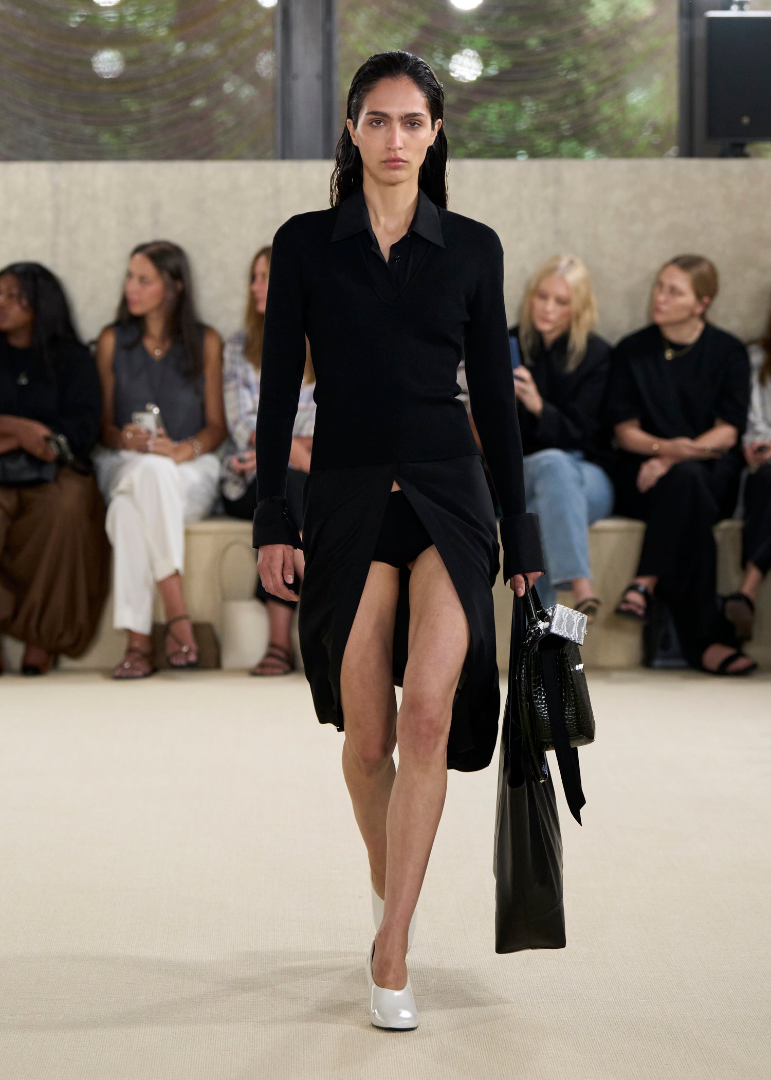 The Spring Summer 26 runway collection distills undone beauty. TOTEME icons like the tank, trench coat and pajama are deconstructed with easy-going precision, unravelling finishes, and a liberating mix of time-softened textures.