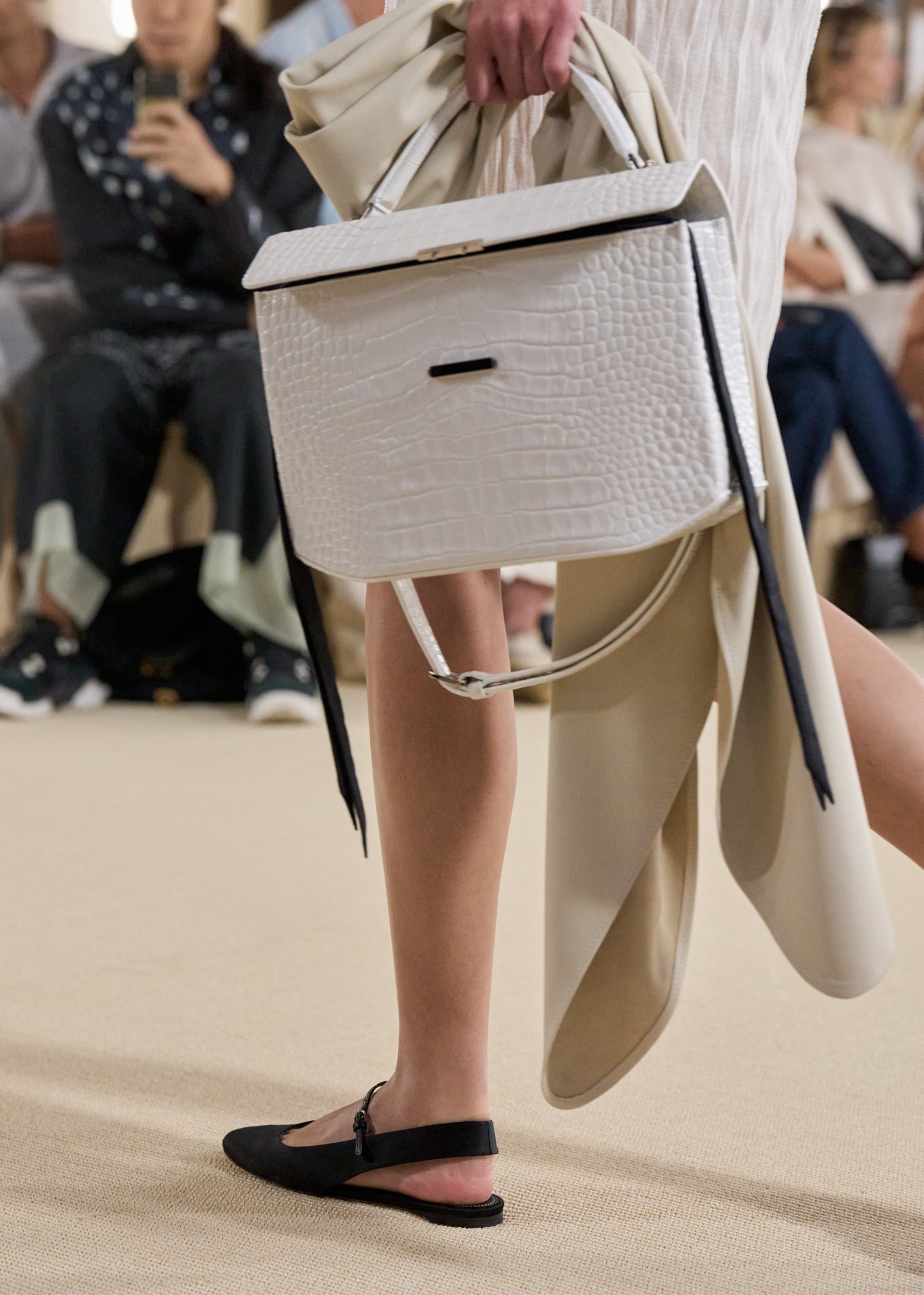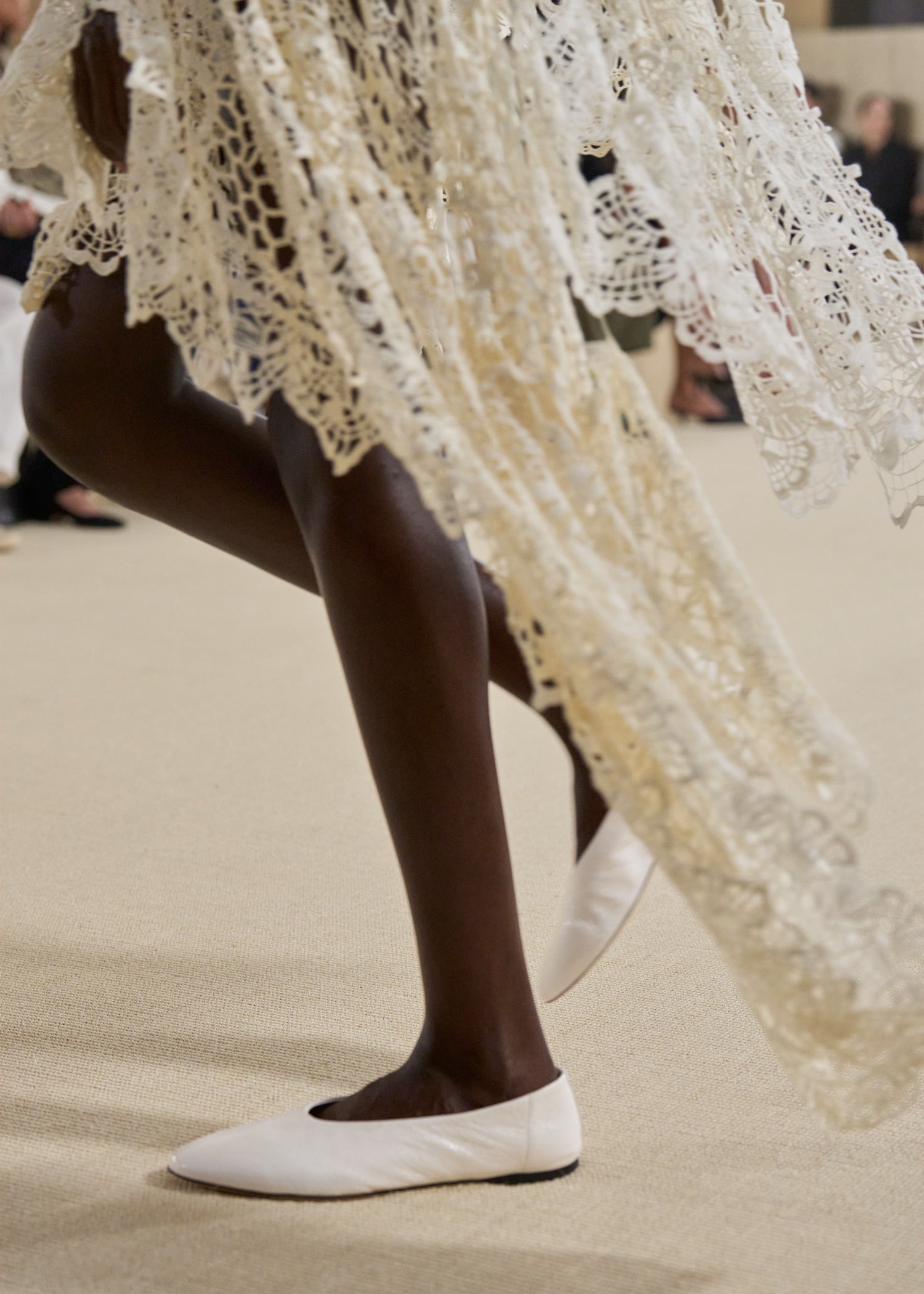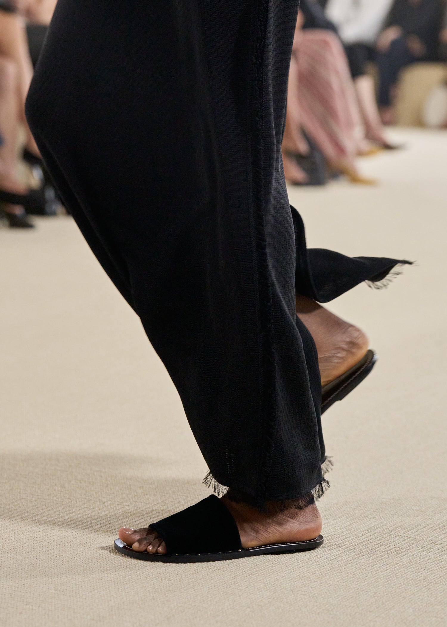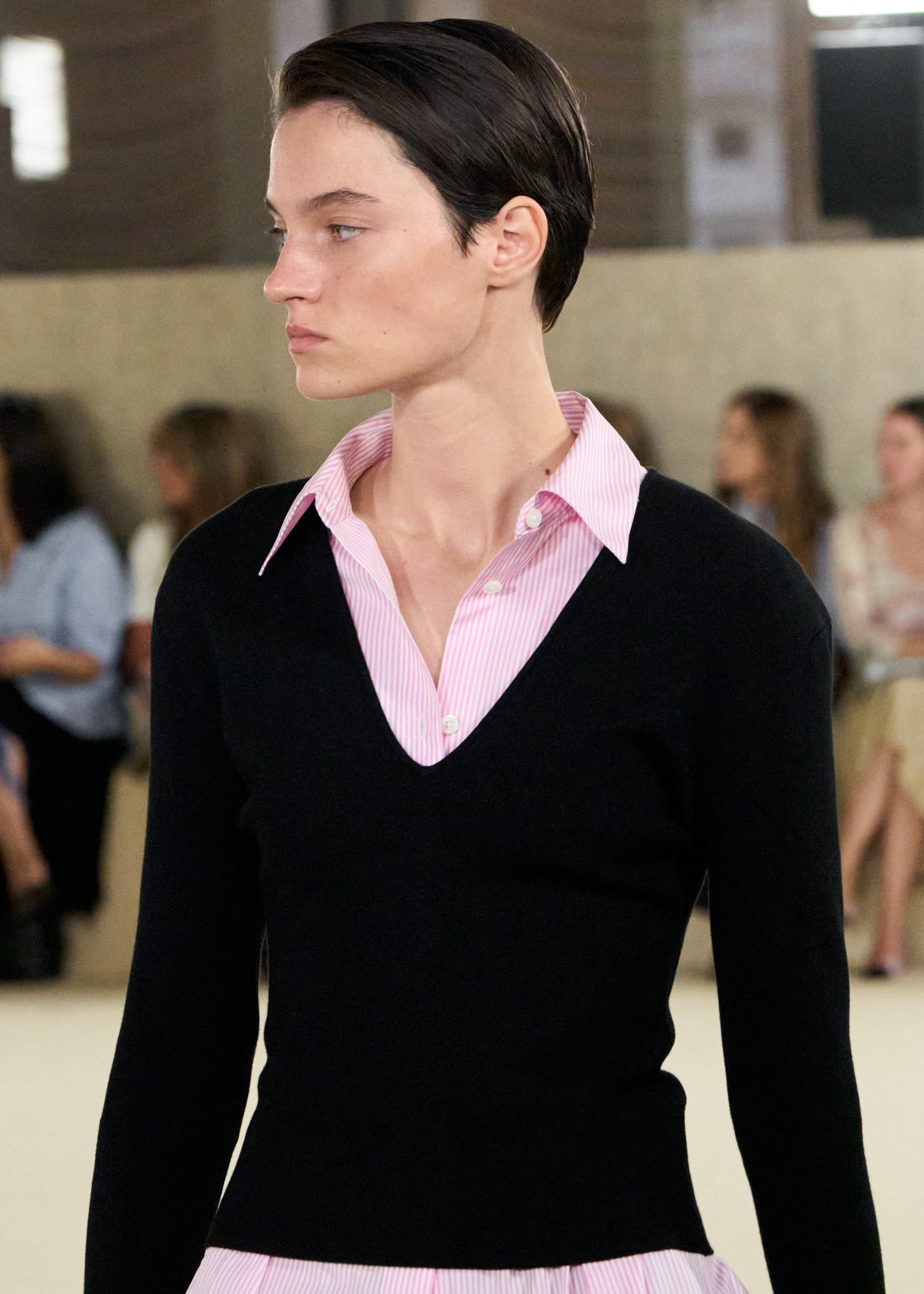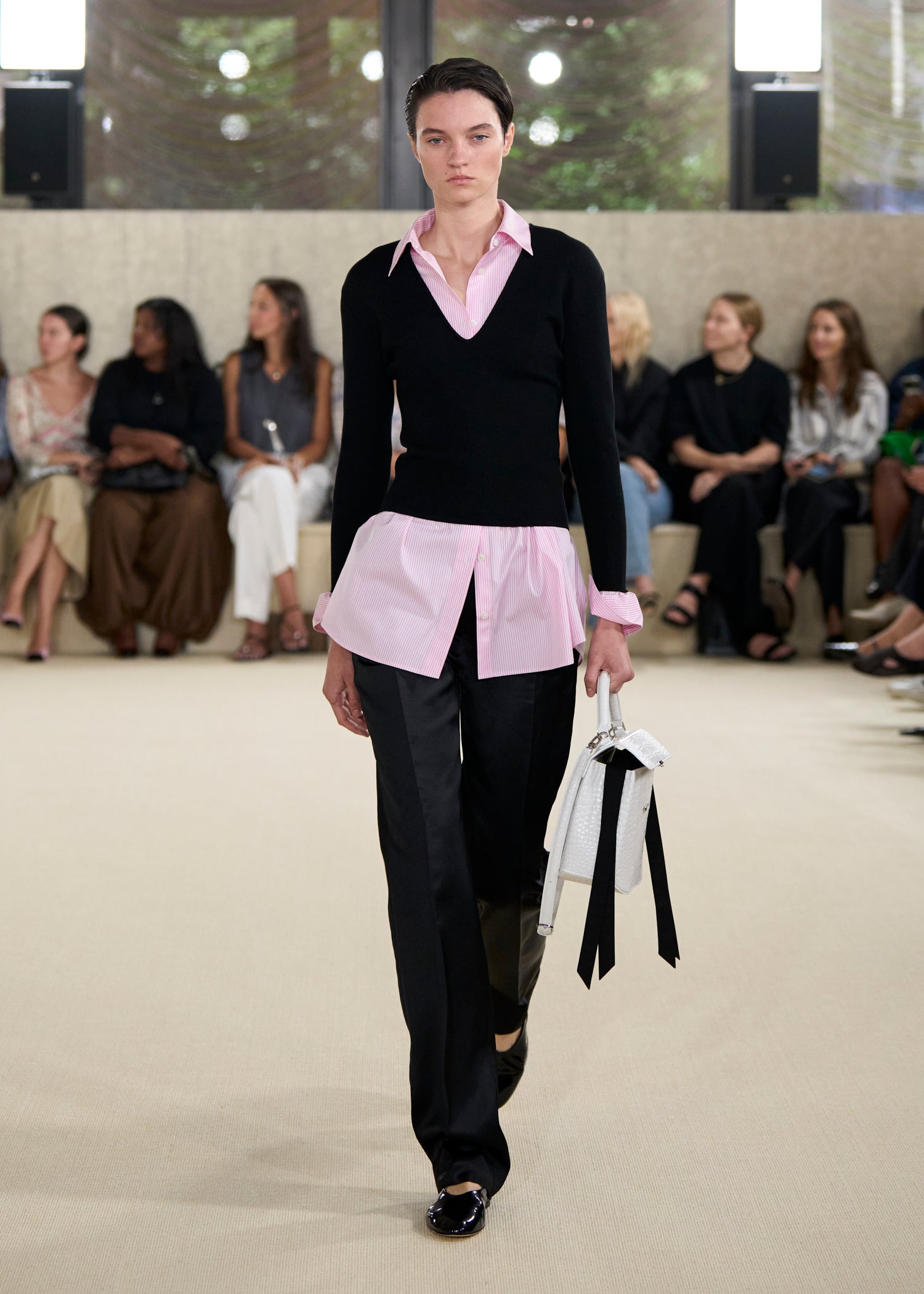 The Spring Summer 26 runway collection distills undone beauty. TOTEME icons like the tank, trench coat and pajama are deconstructed with easy-going precision, unravelling finishes, and a liberating mix of time-softened textures.
