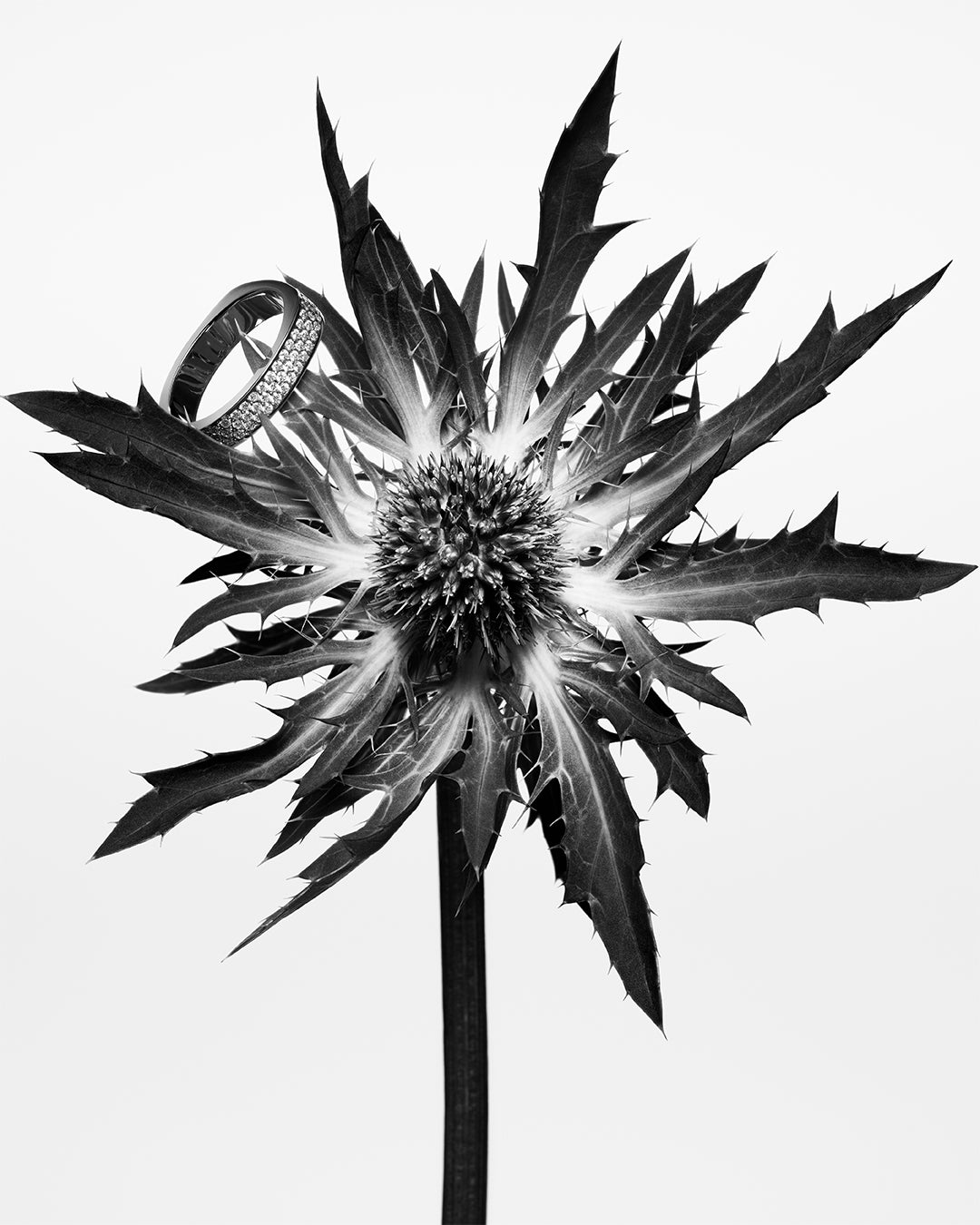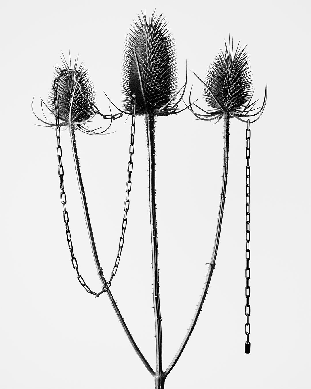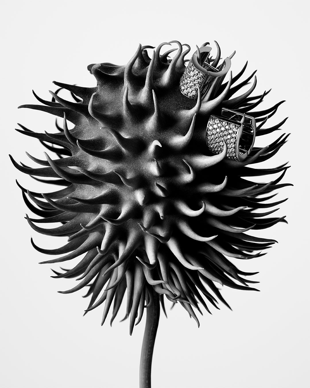 With THORNS, Guido Mocafico crafts a precise visual language that frames jewelry within nature’s own design. Each composition presents desert and succulent plants, including teasel, acacia, aloe marothii, and cow’s horn plant, as sculptural counterparts to TOTEME’s jewelry. The pairing of organic forms with the collection’s clean lines and refined materiality reflects nature’s sculptural mastery and the jewelry's precise design language. The dialogue of shapes, distinct yet delicate, imbues the jewelry with a sense of resilience. Through Mocafico’s lens, jewelry and plants resonate with a shared essence of refinement and depth.