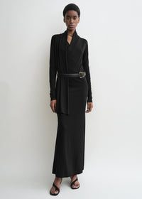 TOTEME dress with a matching scarf attached at the neck that drapes effortlessly over the overlapped front. It is made from fluid viscose jersey with a touch of elastane for a body-hugging fit. Sty...